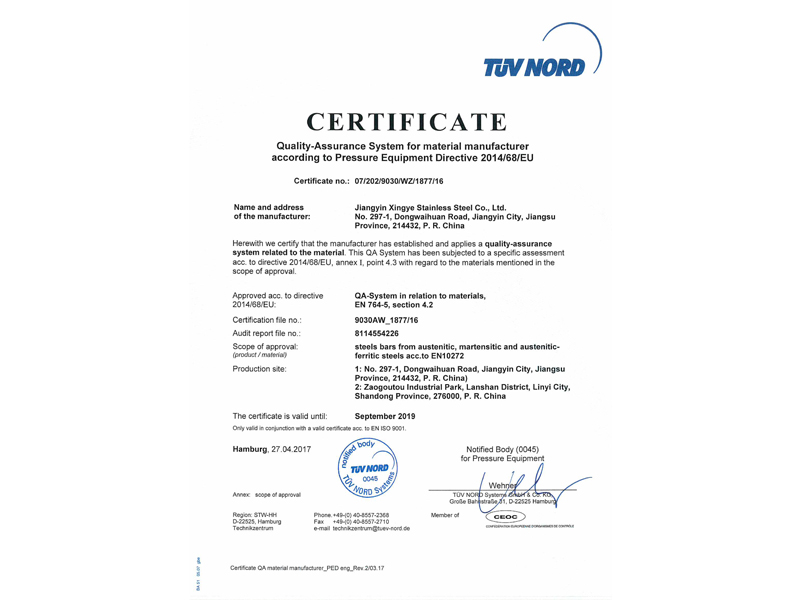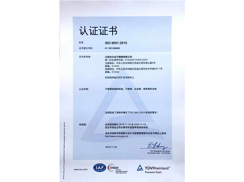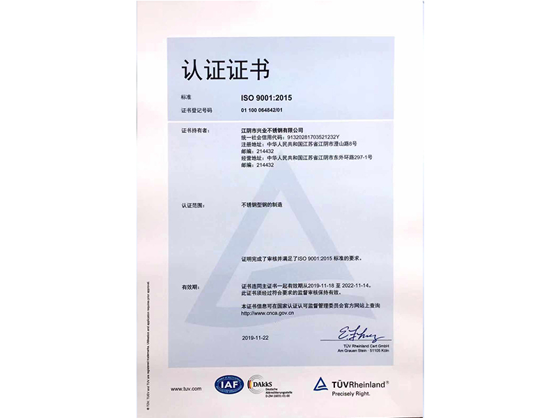 本公司按照ISO9001:2015質量管理體系的標準要求,建立了質量管理體系,并通過TUV認證